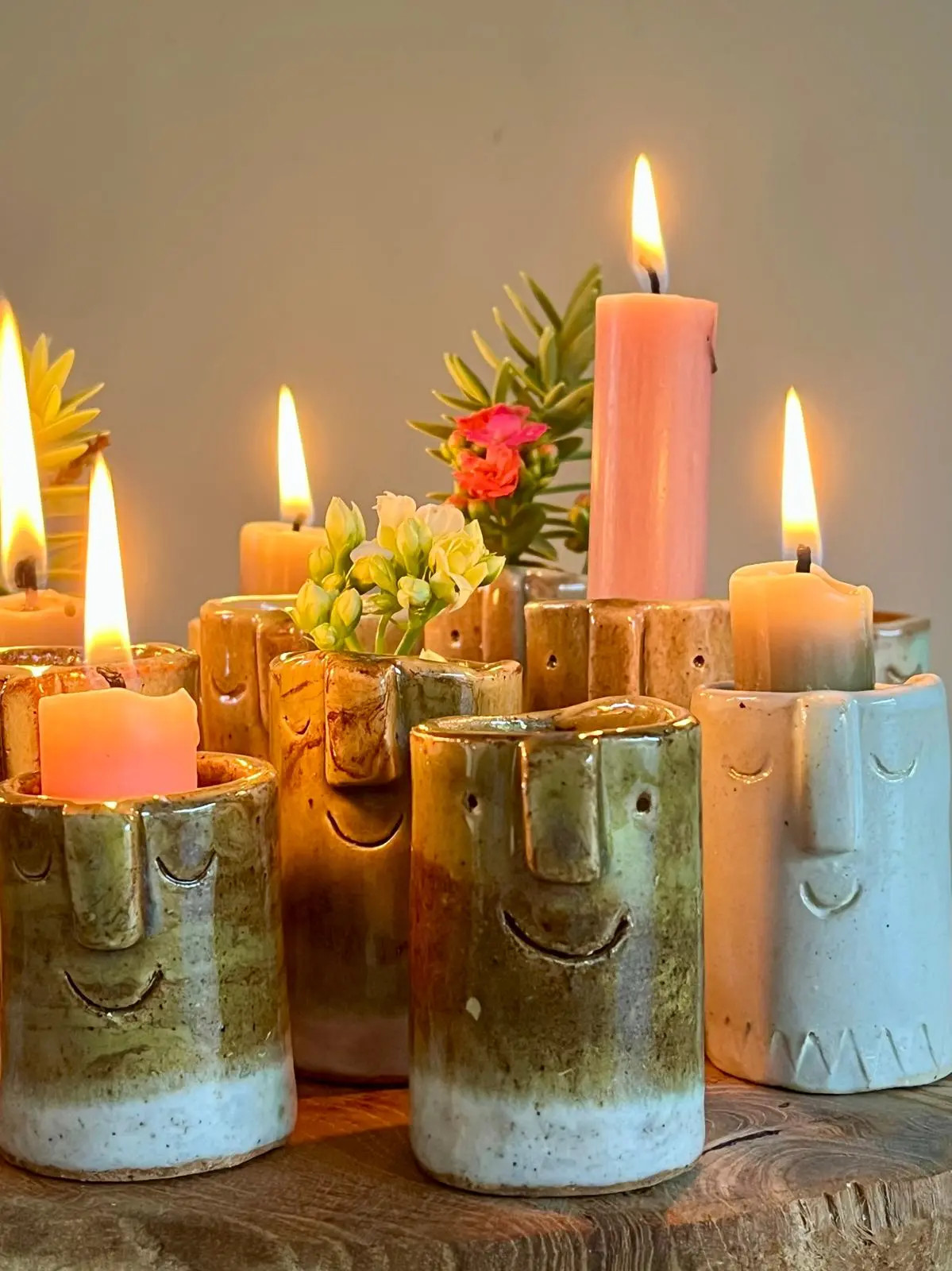 Ontmoet Happy Holly en Restful Roy. Ze brengen unieke vrolijkheid op tafel. Dit handgemaakte keramieken vaasje of kandelaar is een uniek pronkstukje. Perfect voor een mix and match.